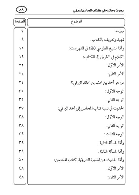 بحوث رجالية في كتاب المحاسن للبرقي المؤلف: الشيخ عادل هاشم 91 صفحة http://alfeker.net/library.php?id=6596